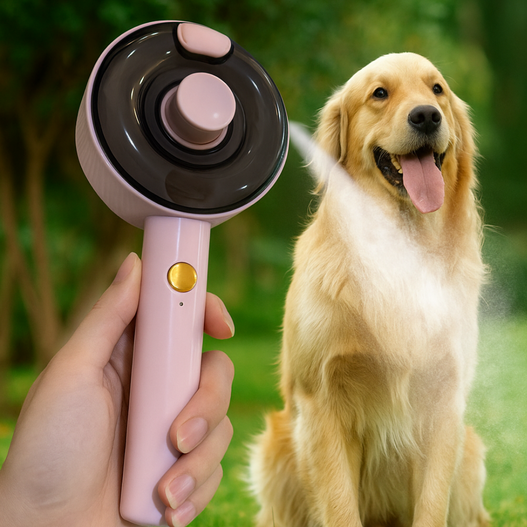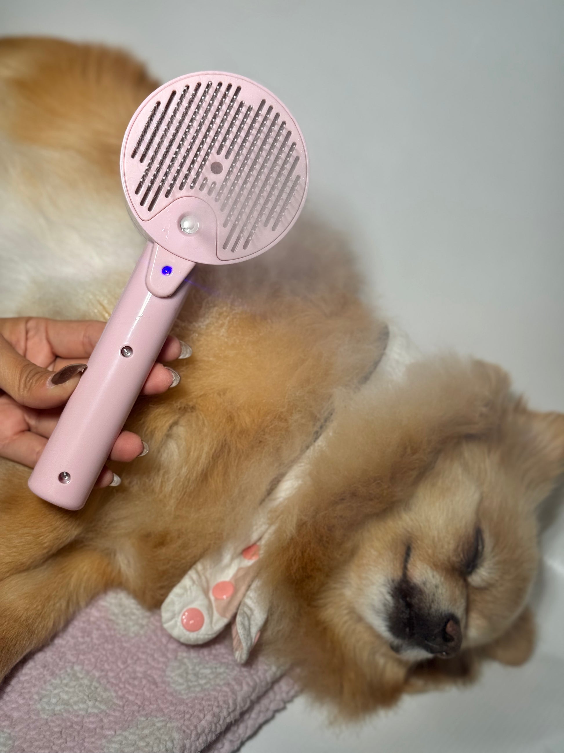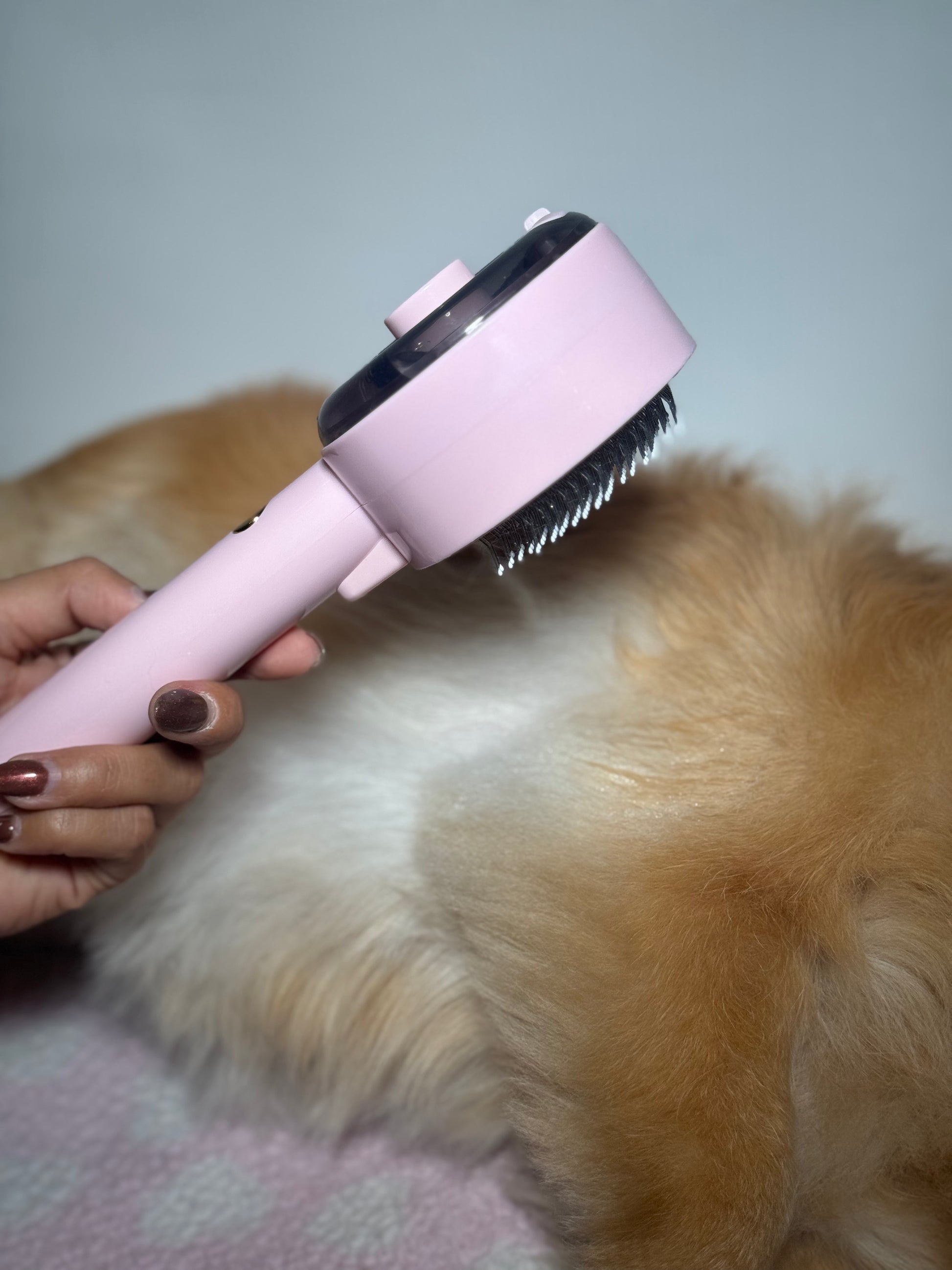 Beneficios: El cepillo cumple su función de desenredar suavemente con sus cerdas de acero inoxidable mientras expulsa vapor, le puedes agregar alguna esencia para que tu mascota quede oliendo como recién bañado. Su diseño compacto, ligero y ergonómico lo hace fácil de usar en casa, manteniendo el pelaje de tu perro o gato limpio, brillante y libre de enredos.