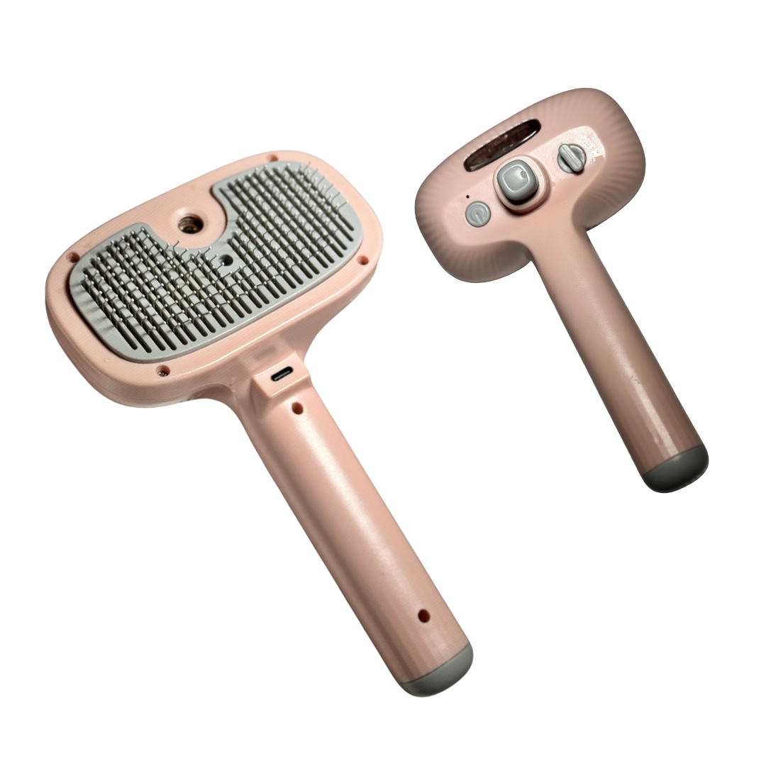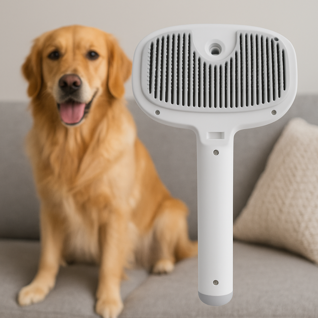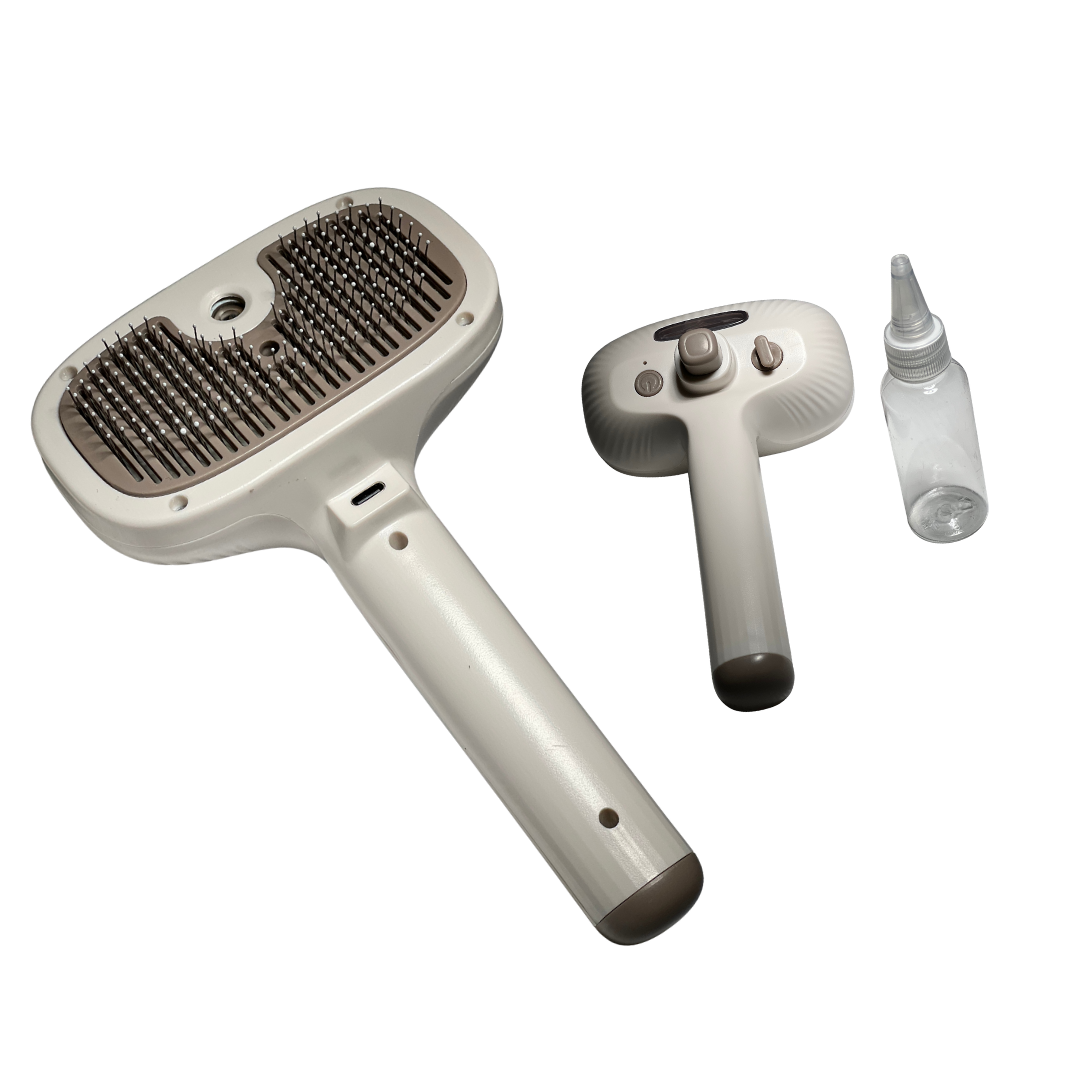 Beneficios: El cepillo cumple su función de desenredar suavemente con sus cerdas de acero inoxidable mientras expulsa vapor, le puedes agregar alguna esencia para que tu mascota quede oliendo como recién bañado. Su diseño compacto, ligero y ergonómico lo hace fácil de usar en casa, manteniendo el pelaje de tu perro o gato limpio, brillante y libre de enredos.