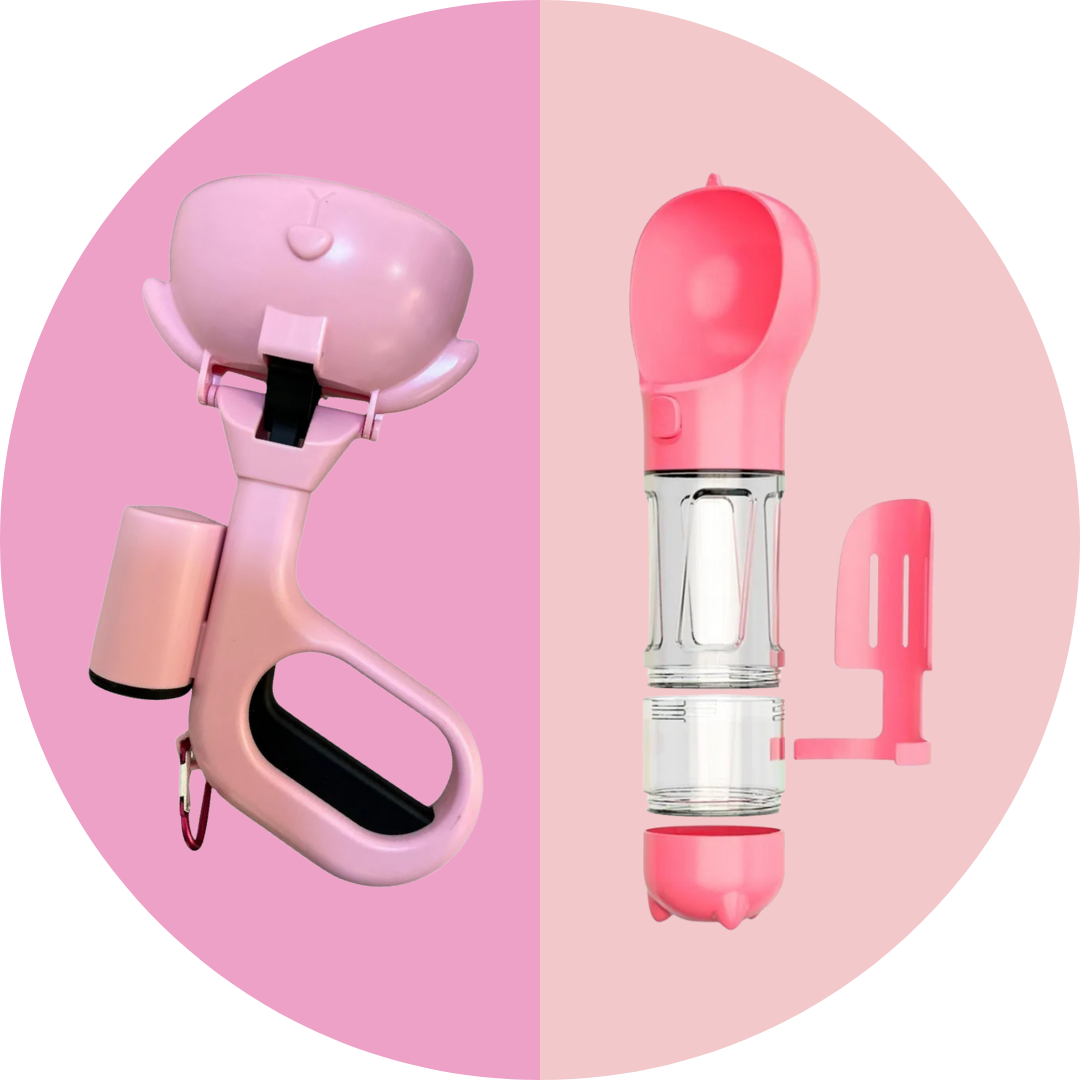 La botella 4 en 1 te permite llevar agua, comida y bolsas en un solo accesorio ligero y portátil, mientras que la pala recoge popó hace que la limpieza sea rápida e higiénica en cualquier lugar. Juntos, forman el kit ideal para paseos, viajes y salidas al parque, manteniendo a tu peludo cómodo y a ti totalmente preparado.