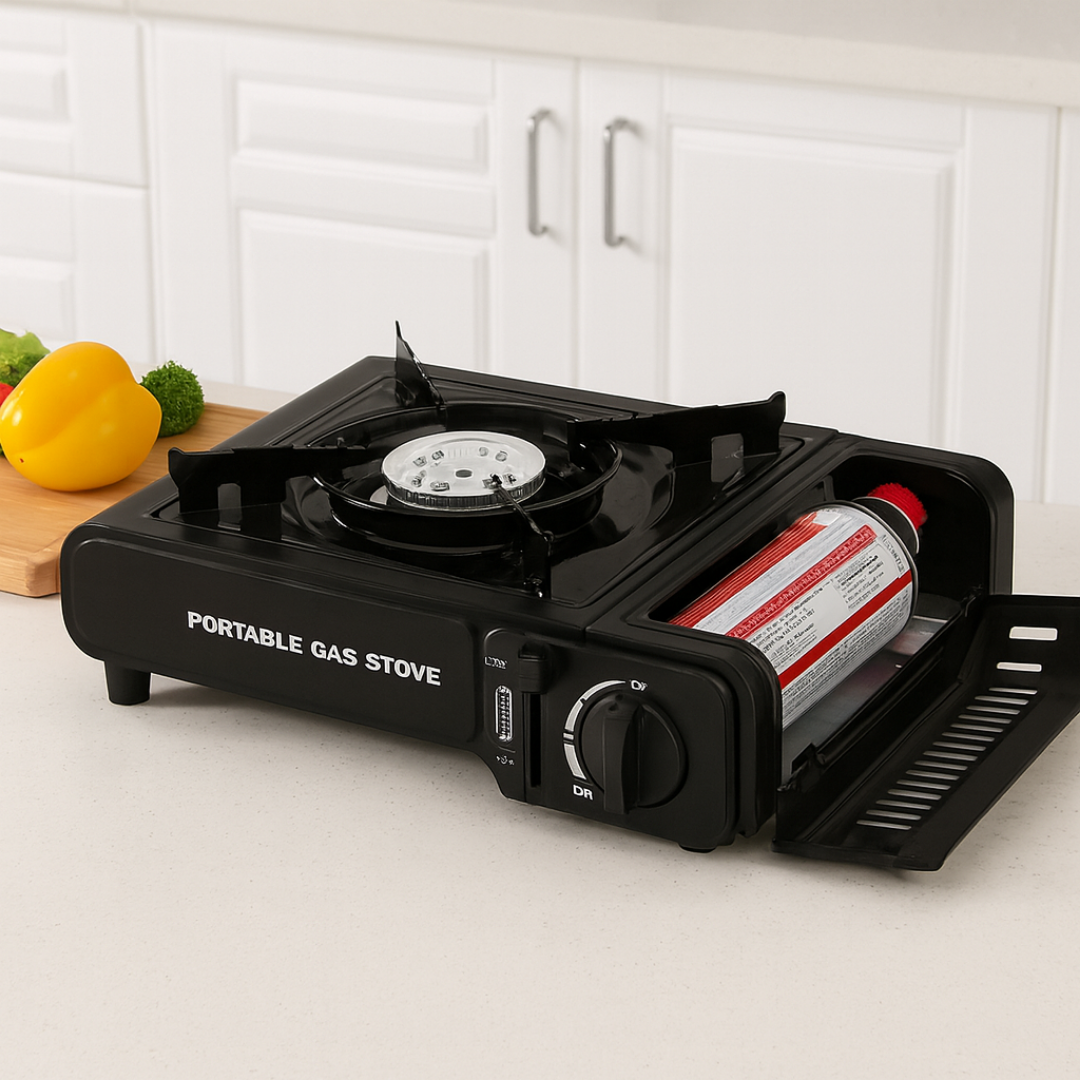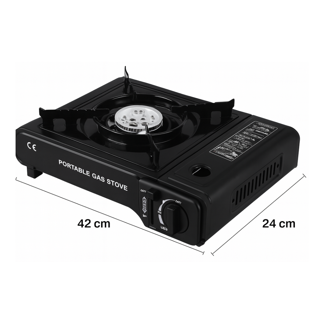 Beneficios: Práctica y resistente hornilla a gas ideal para camping, viajes, emergencias o el hogar. Su diseño compacto en acero esmaltado incluye perilla reguladora de llama, encendido rápido y seguro, además de parrilla removible para fácil limpieza. Compatible con bombonas y cartuchos de gas butano, es ligera, portátil y eficiente, perfecta para llevar la cocina a cualquier lugar.