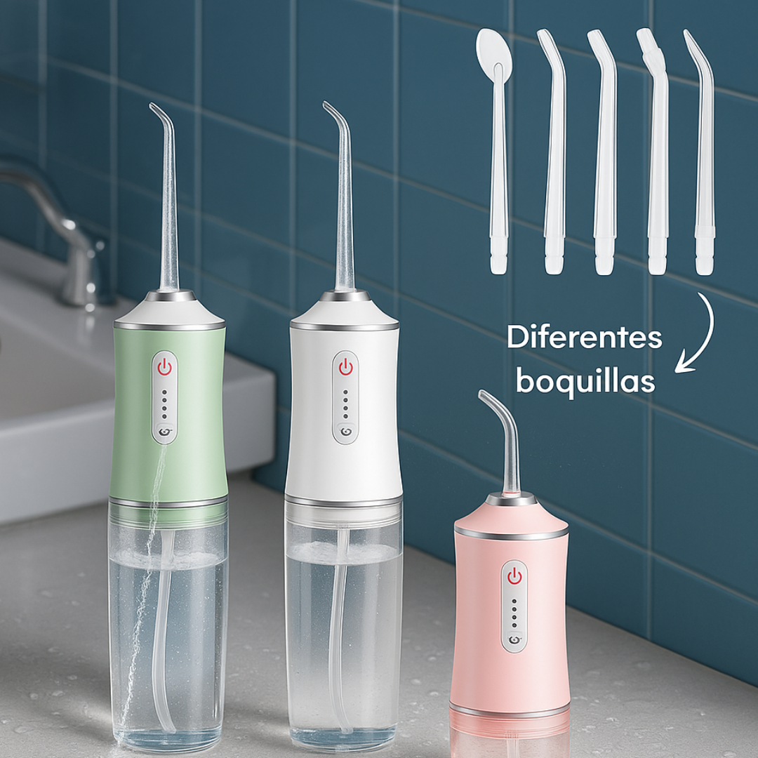 Beneficios: Cuida tu higiene bucal de forma práctica y eficaz con este irrigador dental portátil. Su diseño compacto y elegante permite llevarlo contigo a cualquier lugar, mientras su potente chorro de agua elimina restos de comida y placa bacteriana donde el cepillo no llega. Incluye diferentes boquillas intercambiables para toda la familia.