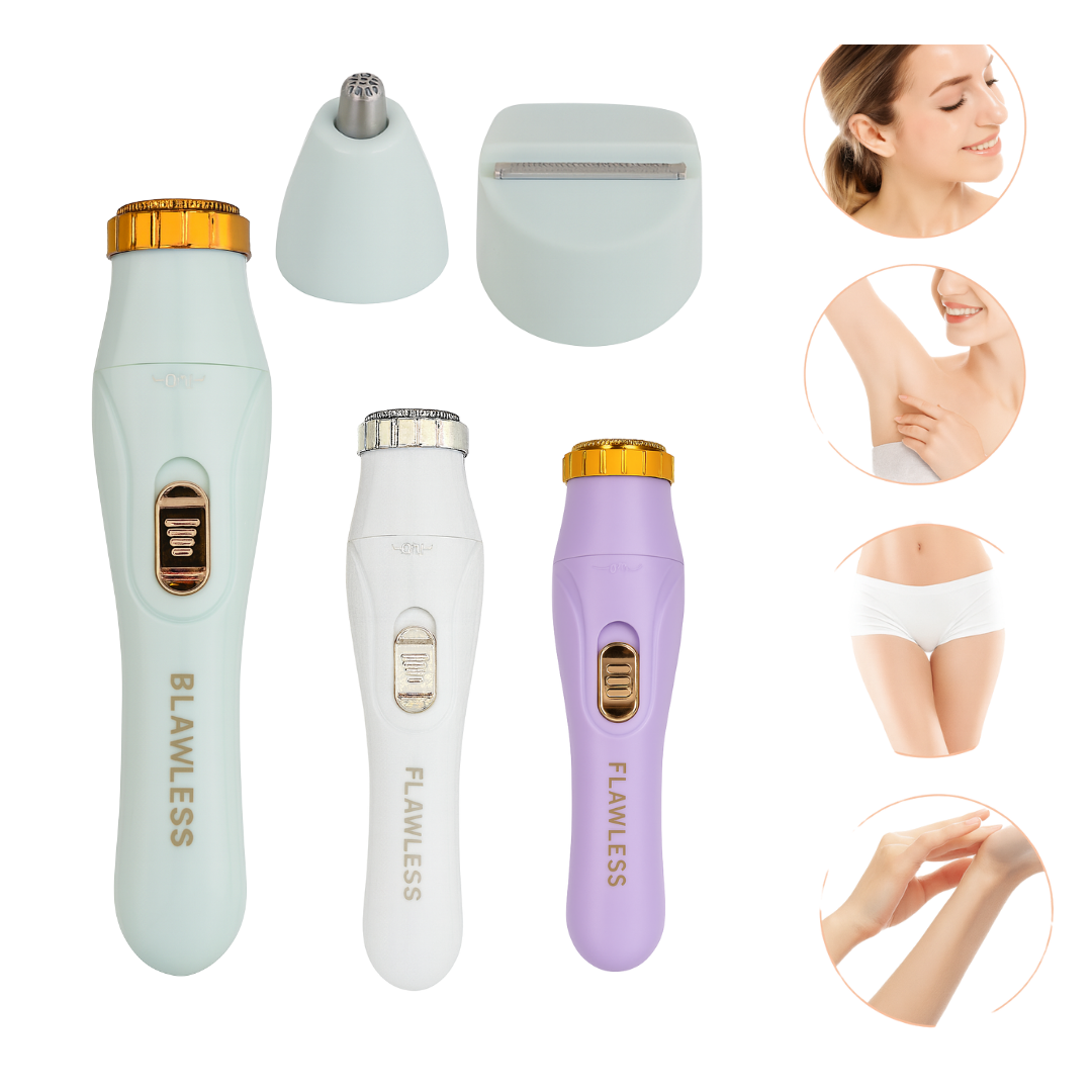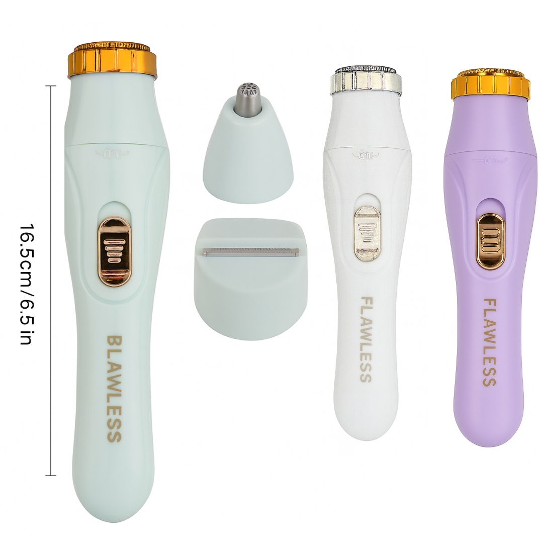 Beneficios: Disfruta de una depilación práctica y sin dolor con esta elegante depiladora eléctrica multifuncional. Incluye 3 cabezales intercambiables: un cabezal de precisión, un cabezal para nariz/orejas y un cabezal para depilación facial.
