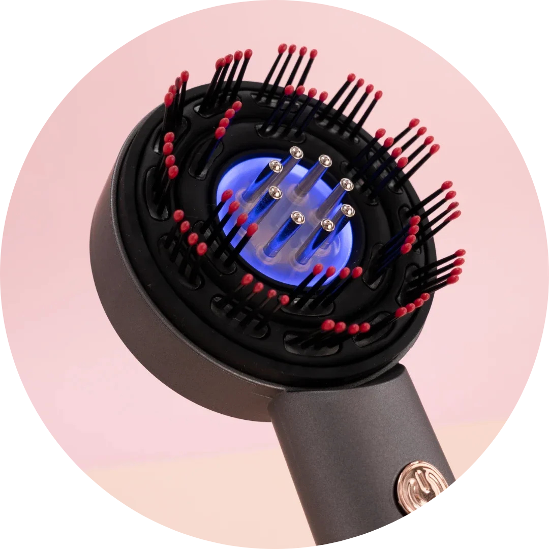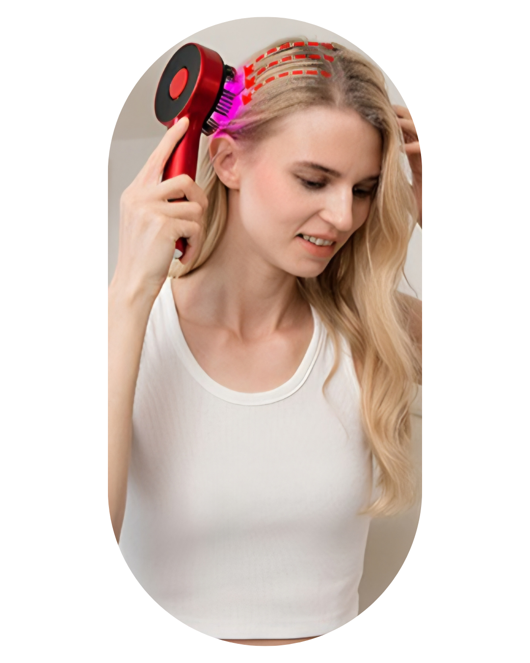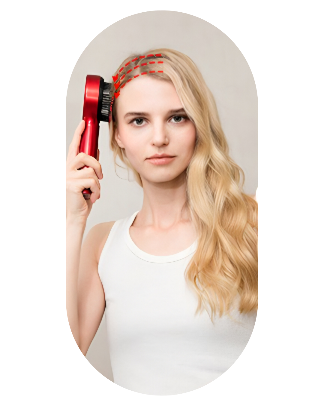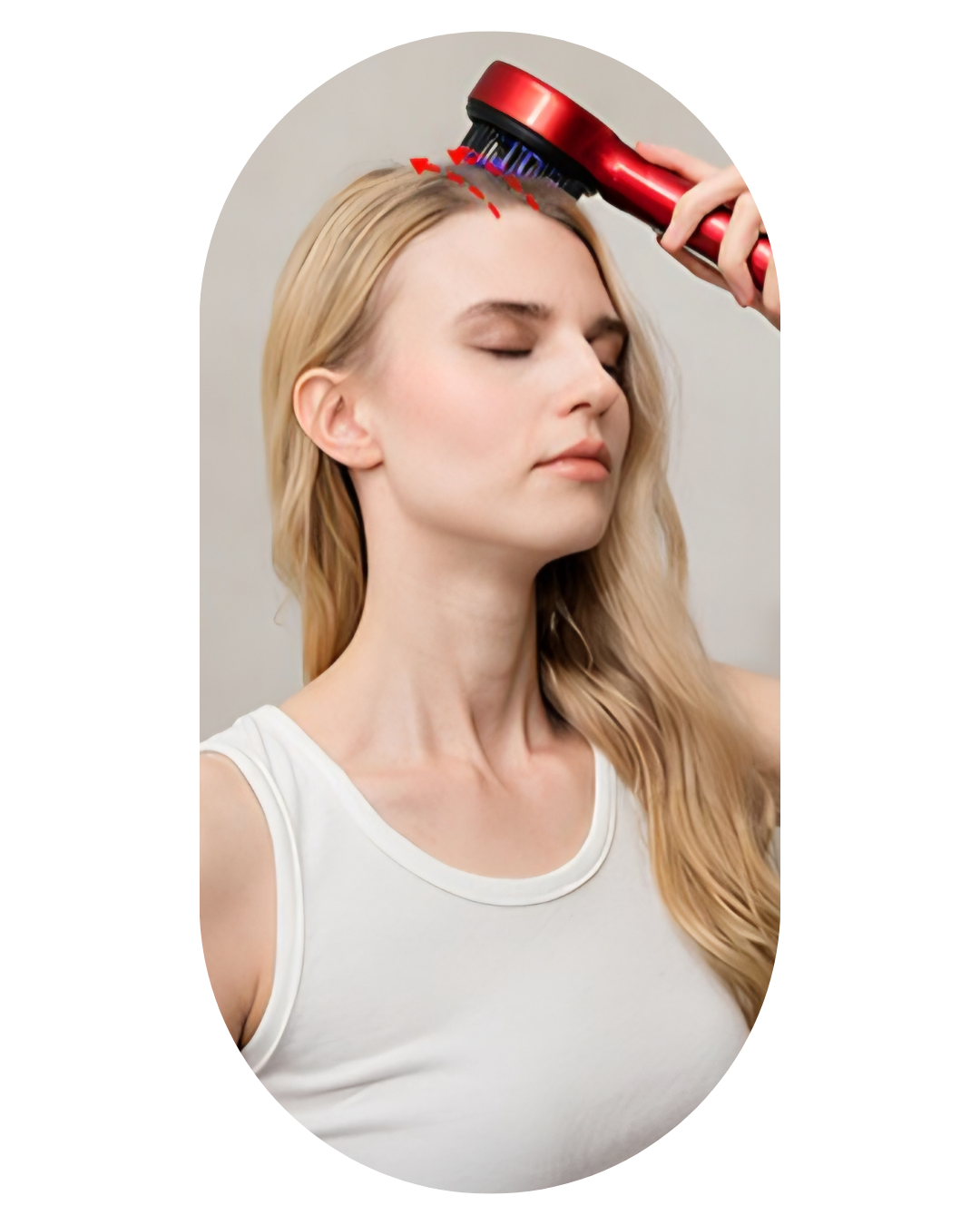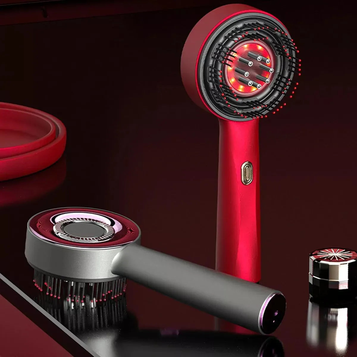 El Cepillo Masajeador de Cabeza combina vibración inteligente, luz LED roja y cerdas de silicona suave para darte un masaje profundo que mejora la circulación, relaja tu mente y prepara tu cuero cabelludo para absorber mejor cualquier tratamiento.