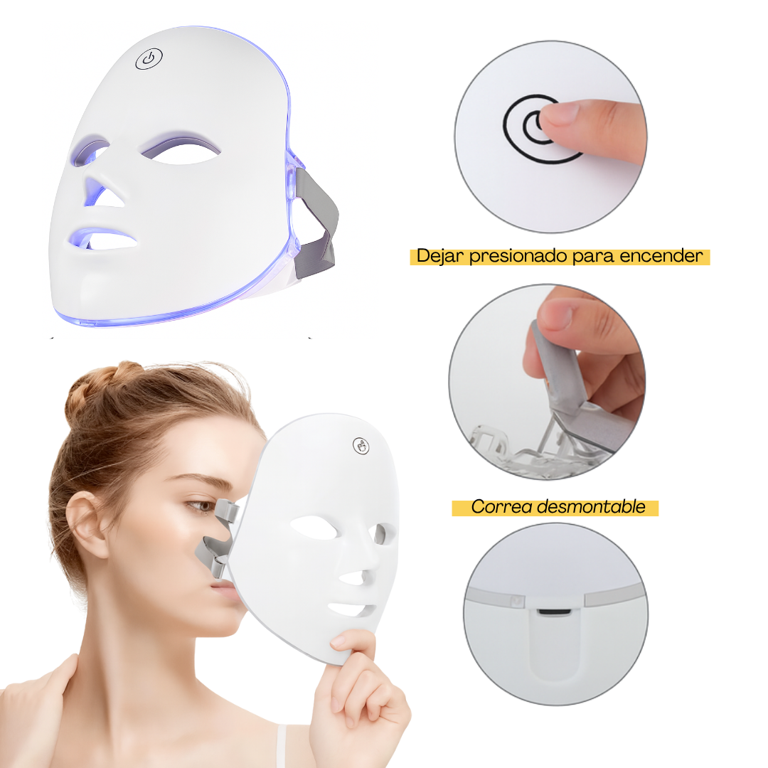 Beneficios: La máscara de belleza LED facial es un dispositivo práctico y seguro para el cuidado de la piel en casa o de viaje. Con 3 luces de terapia, roja: Colágeno y antiarrugas, verde: Unifica tono y reduce manchas y azul: Antiacné y calma la piel. Recomendaciones: Usar 15–30 min por sesión, 3–5 veces/semana