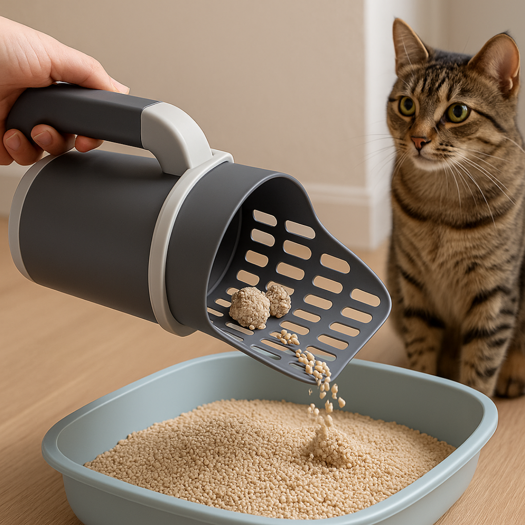 Beneficios: Mantén el arenero de tu gato siempre limpio y libre de olores con este práctico recogedor 2 en 1, que combina pala y dispensador de bolsas en un diseño compacto, resistente y fácil de limpiar. Con su mango ergonómico y espacio integrado para guardar y extraer bolsas, facilita la recolección y desecho de los desechos de manera rápida, cómoda e higiénica, ideal para el uso diario.