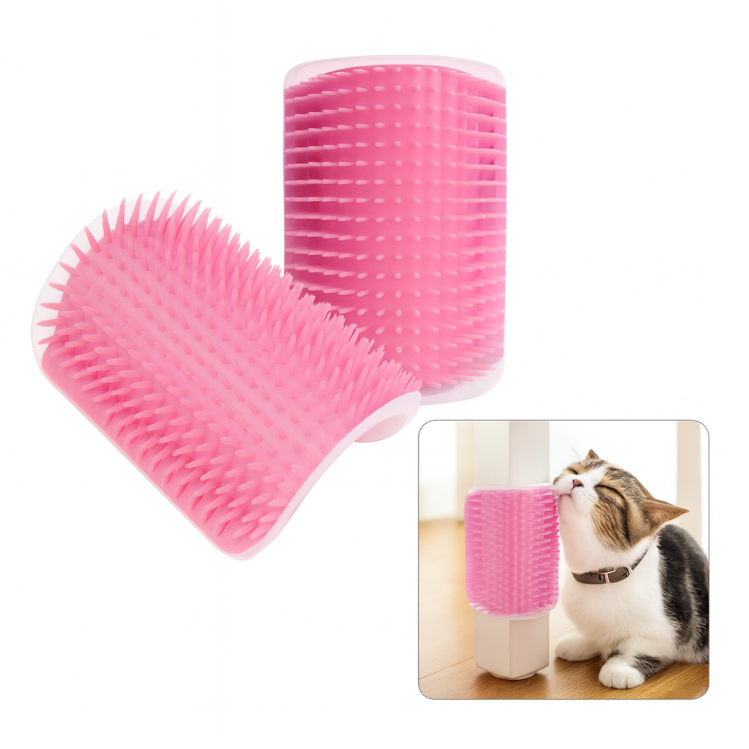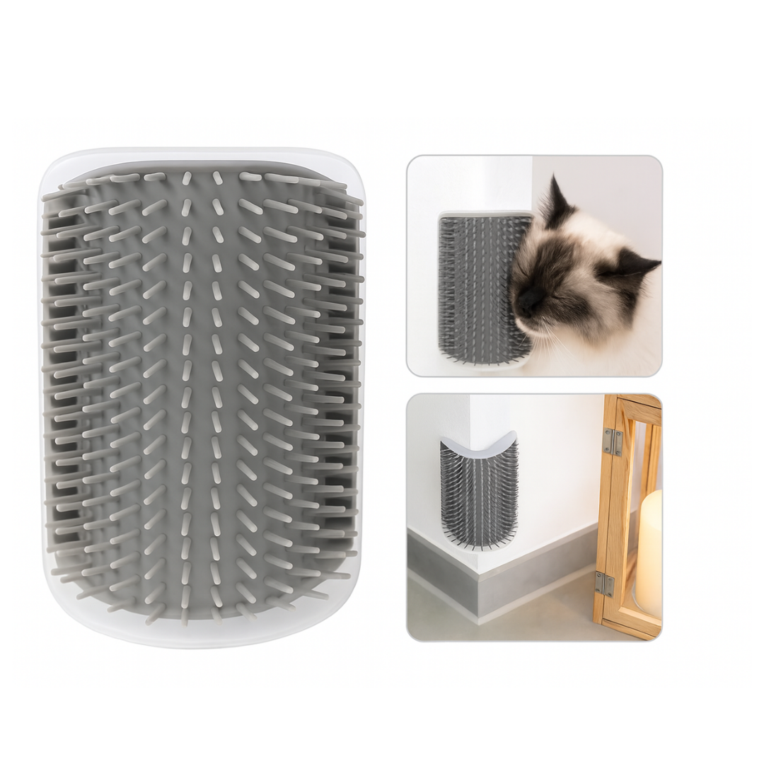 Beneficios: El cepillo masajeador de esquinas para gatos con catnip es el accesorio perfecto para que tu mascota se cepille sola, eliminando el pelo suelto mientras disfruta de un masaje relajante. Sus cerdas de silicona suaves estimulan la circulación y son seguras para la piel, ayudando a reducir la caída de pelo en el hogar. Incluye catnip para atraer naturalmente a tu gato y motivarlo a usarlo con frecuencia. Se instala fácilmente en esquinas, paredes o muebles, es desmontable para una limpieza sencilla y está disponible en varios colores.