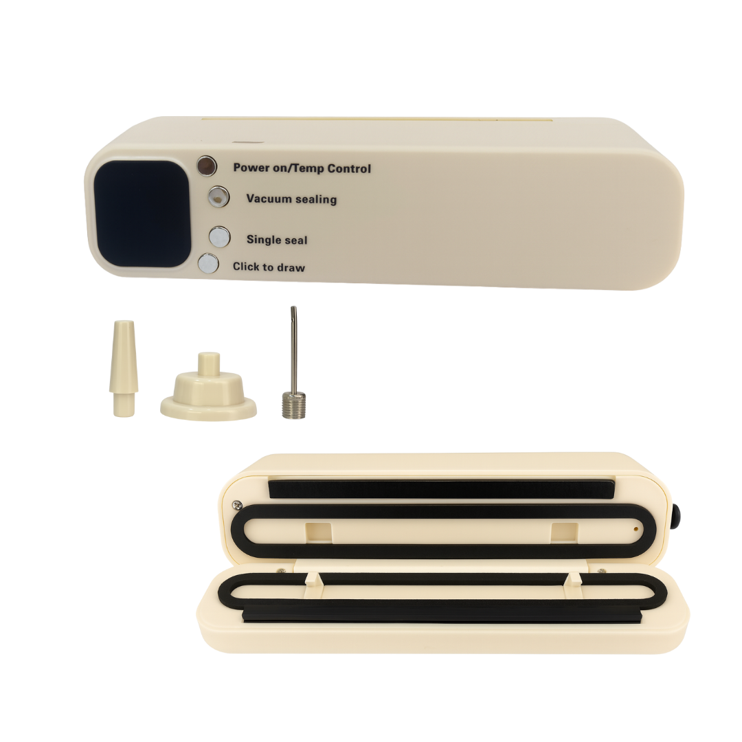 Beneficios: Este práctico sellador al vacío mantiene los alimentos frescos por más tiempo, evitando la humedad y la pérdida de sabor. Ofrece diferentes modos de sellado según la necesidad, ya sea con vacío o sellado simple. Su diseño compacto y moderno lo hace fácil de guardar y transportar, además incluye bolsas para que puedas empezar a usarlo de inmediato, haciendo más práctico y versátil su uso en la cocina.
